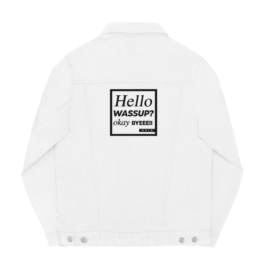 Hello Wassup Okay Bye! Denim Jacket (Black Logo)